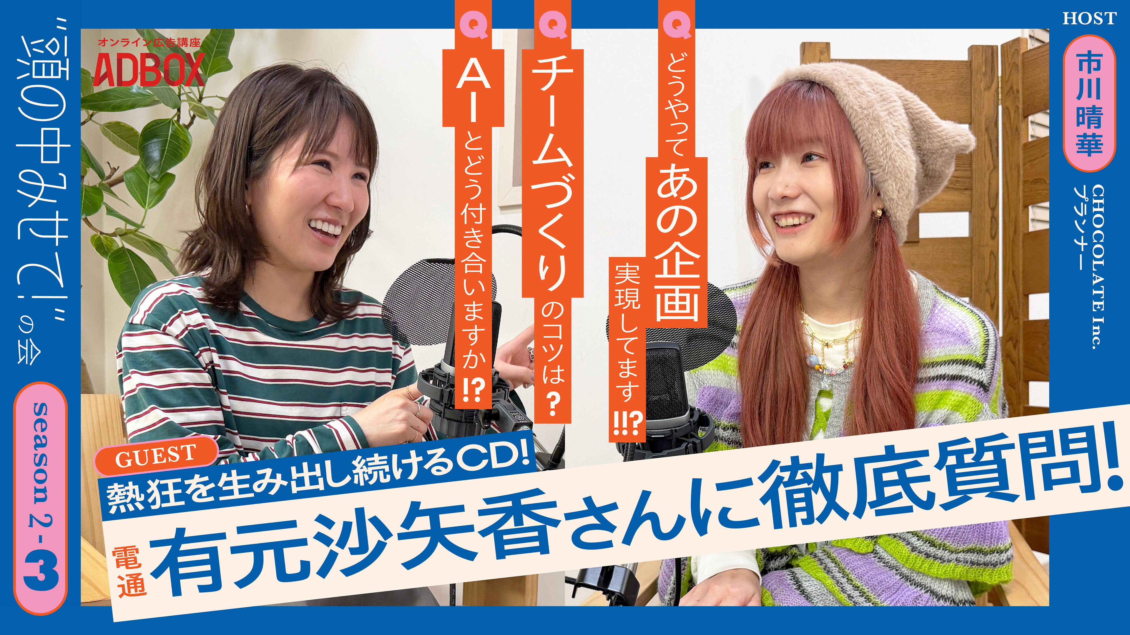 学びを深めたいコピーライター、CMプランナー、クリエイティブディレクター、PRプランナーへ向けたオンライン講座、オンラインイベント、インタビュー記事、コラムなどを配信するADBOXは、電通、博報堂、ADKをはじめとした多くの広告会社、制作会社、PR会社、クライアント企業に所属する多くのビジネスマンが受講しています。日本を代表するナショナルクライアントの広告からスタートアップ企業の広告まで、話題のキャンペーンやクリエイティブを担当した現役のクリエイターが、新入社員や転職を考えるクリエイティブ初心者でも多くの学びを得られるような授業を行なっています。広告クリエイティブの基礎から応用、実践まで、ビジネスの現場や企画が必要となる様々なシチュエーションで使えるクリエイティビティを養成します。コピーライターやプランナー、クリエイティブディレクターを目指す方だけでなく、言語化力、企画力、思考力を鍛えたい方にもおすすめの講座です。