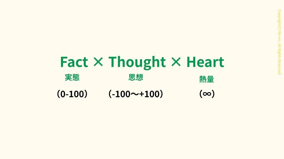 Fact(事実) x Thought(思想) x Heart(熱量)